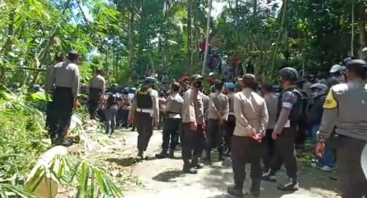 aparat kepolisian dan sedikitnya 9 orang luka-luka terkait ratusan warga Desa