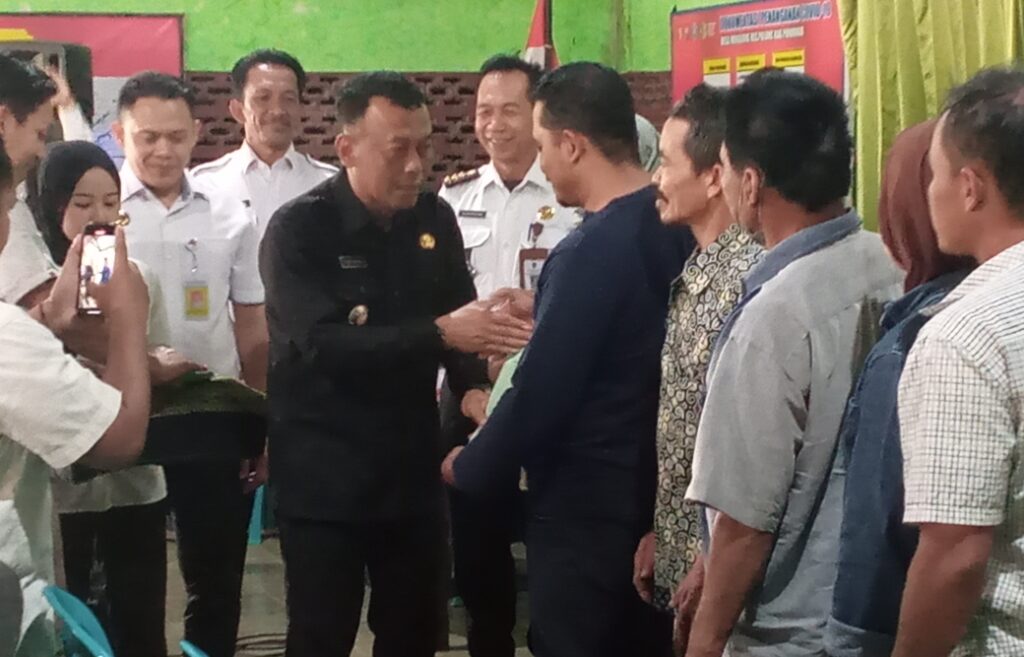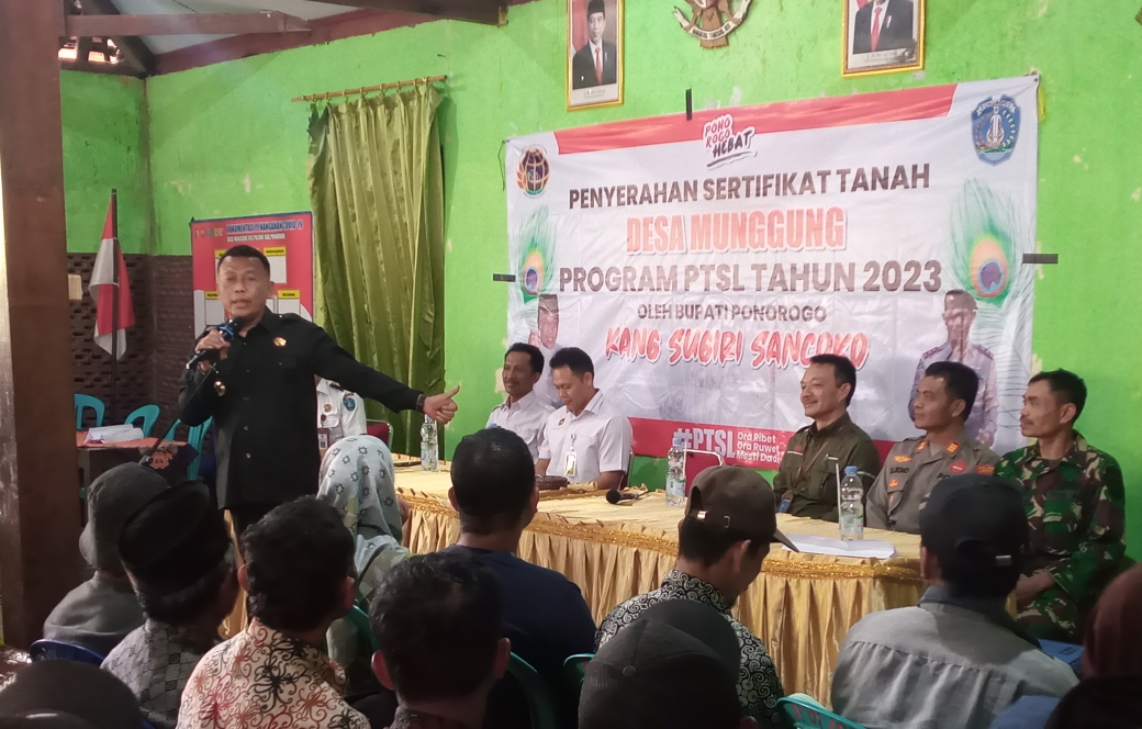 TEROPONGNUSA.COM | PONOROGO – Masyarakat Desa Munggung, Kecamatan Pulung menerima sertifikat Program Pendaftaran Tanah Sistematis Lengkap (PTSL) di kantor Desa Munggung, Rabu (6/9/2023).