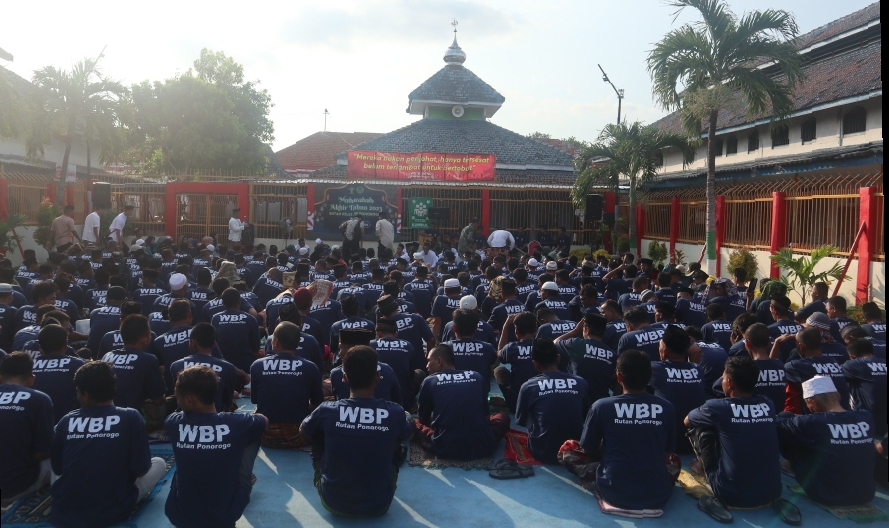 Seluruh Warga Binaan Pemasyarakatan (WBP) dan juga pegawai Rutan Ponorogo turut mengikuti kegiatan Muhasabah Akhir Tahun.