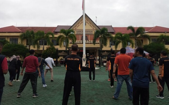 Sinergitas Polisi dan Pers di Magetan, Senam Bareng Sambil Rayakan HPN