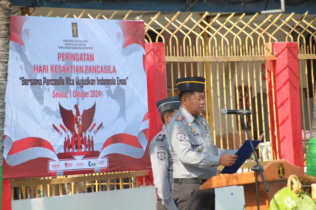 PONOROGO, TEROPONGNUSA.COM – Rumah Tahanan Negara Kelas IIB Ponorogo menggelar upacara Peringatan Hari Kesaktian Pancasila yang berlangsung di lapangan Rutan mulai pukul 07.30 WIB. Upacara ini diikuti oleh seluruh pegawai serta warga binaan pemasyarakatan dan berlangsung dengan khidmat, Selasa (1/9/2024).