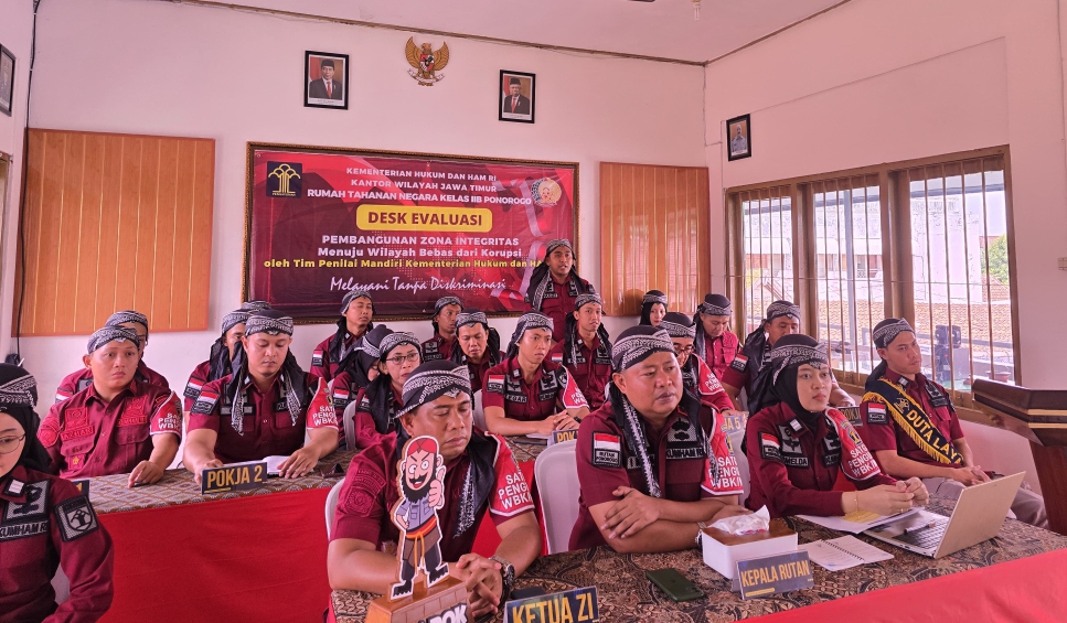 PONOROGO, TEROPONGNUSA.COM – Hari ini, Rutan Kelas IIB Ponorogo melaksanakan kegiatan Zoom Desk Evaluasi Pembangunan Zona Integritas (ZI) menuju Wilayah Bebas dari Korupsi (WBK) tahun 2024. Kegiatan ini melibatkan Tim Penilai Mandiri (TPM) dari Inspektorat Jenderal, Direktorat Jenderal Pemasyarakatan, dan Badan Strategi Kebijakan Kementerian Hukum dan HAM. Bertempat di Sekretariat Zona Integritas, acara ini dihadiri oleh Kepala Rutan Agus Imam Taufik dan Tim Zona Integritas Rutan Ponorogo.