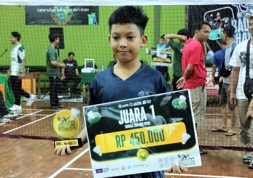 MADIUN, TEROPONGNUSA.COM – Prestasi membanggakan kembali ditorehkan oleh siswa MI Muhammadiyah Dolopo, Madiun. Agam Ilham Candra P., putra pasangan Bambang Hariadi dan Indah Kristiani, berhasil meraih Juara 1 pada kategori tunggal dini putra di ajang Badminton Championship “Lantansa” Gontor.