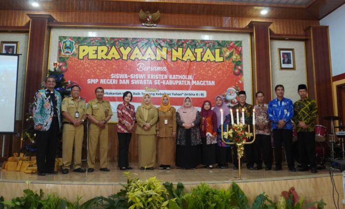 MAGETAN, TEROPONGNUSA.COM – Ibadah dengan suka cita Natal bersama siswa Kristen Katolik se-Kabupaten Magetan dilaksanakan dengan penuh kehangatan dan kekhidmatan di SMPN 1 Ngariboyo, pada Selasa (21/1/2025).