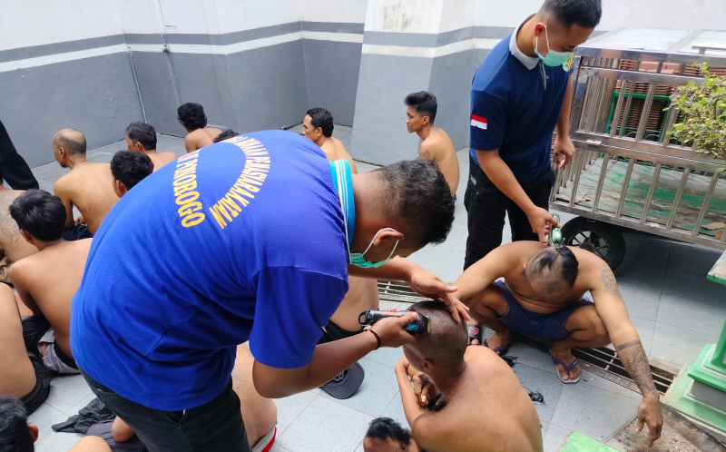 Tim medis juga terlibat dalam pengecekan kesehatan untuk memastikan kondisi fisik narapidana dalam keadaan baik. Selanjutnya, narapidana menjalani proses perapihan diri yang mencakup potong rambut, potong kuku, dan pembagian kaos seragam.