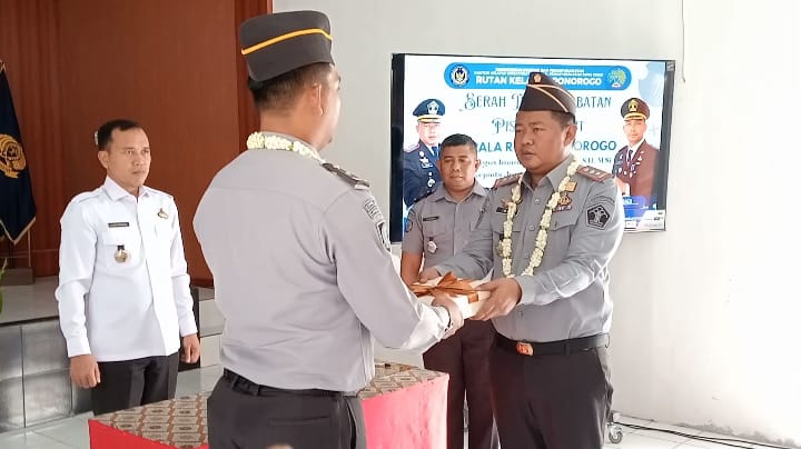 PONOROGO, TEROPONGNUSA.COM – Upacara serah terima jabatan (sertijab) dan pisah sambut Kepala Rumah Tahanan (Rutan) Ponorogo telah berlangsung Aula Condrodimuko Rutan Ponorogo, pada Senin (24/2/2025).