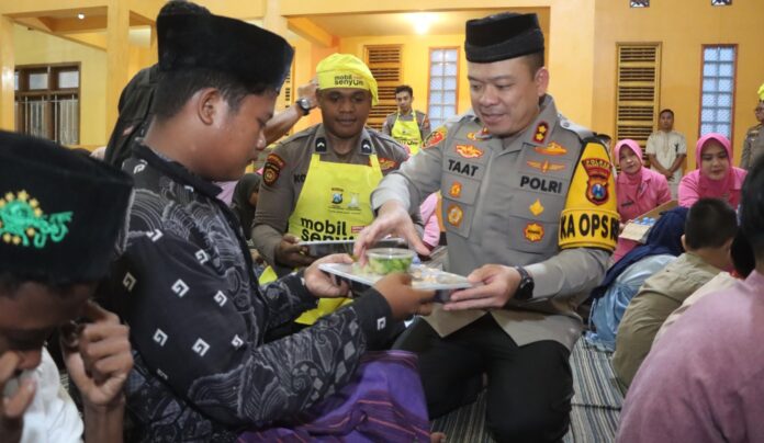“Hari ini kami menggelar program pembagian makanan bergizi gratis untuk berbuka puasa di Panti Asuhan Ahmad Yani Al Muslimun,” ungkap AKBP Taat.