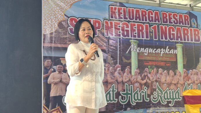 Kepala SMPN 1 Ngariboyo, Susilo Prihayanti, S.Pd., M.Pd., memberikan sambutan penuh makna. Pihaknya mengajak semua yang hadir untuk memaknai kegiatan Halal Bihalal ini sebagai momen kebersamaan dan introspeksi diri.