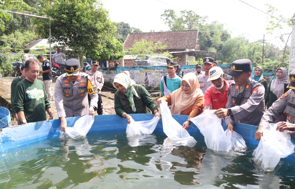 Dalam kegiatan tersebut, Kapolres meninjau kolam pembesaran ikan nila yang dikelola oleh BUMDes Sumberdodol, melakukan penaburan benih ikan nila, serta ikut memanen ikan nila dan melihat budidaya ikan koi warga binaan Dinas Peternakan dan Perikanan Kabupaten Magetan.
