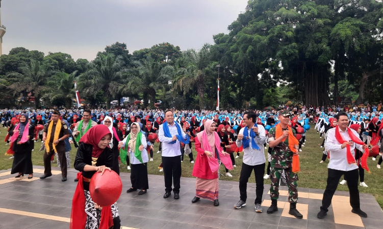 Tak hanya menampilkan kreativitas, kegiatan ini juga mengajak ribuan siswa untuk bergerak aktif dalam Senam Sehat Anak Indonesia Hebat, serta menyuguhkan Tari Kolosal Golek Menak yang dibawakan dengan penuh semangat oleh para tenaga pendidik.