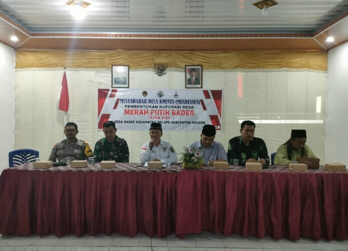 MADIUN, TEROPONGNUSA.COM – Pemerintah Desa Bader mengadakan musyawarah desa khusus untuk pembentukan Koperasi Merah Putih (Kopdes MP), sebuah langkah strategis yang bertujuan meningkatkan kesejahteraan masyarakat melalui sektor pertanian dan peternakan.