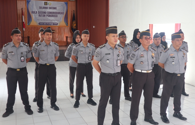 PONOROGO, TEROPONGNUSA.COM – Rumah Tahanan Negara (Rutan) Kelas IIB Ponorogo mengikuti apel bersama jajaran Kementerian Koordinator Bidang Hukum, Hak Asasi Manusia, Imigrasi, dan Pemasyarakatan yang digelar daring, Senin (16/6/2025).