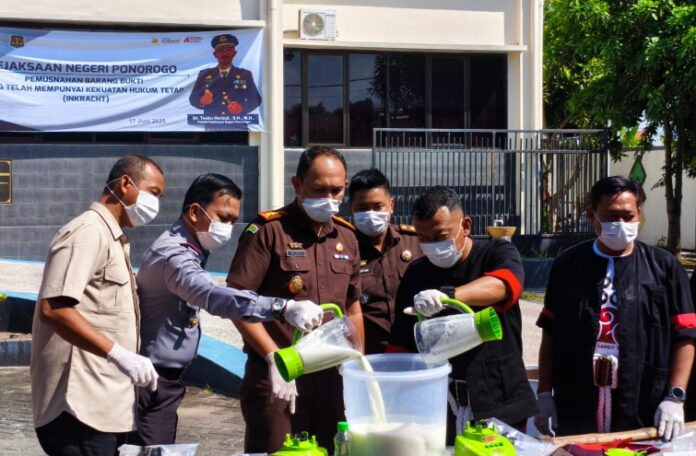 PONOROGO, TEROPONGNUSA.COM – Kepala Rumah Tahanan Negara (Rutan) Kelas IIB Ponorogo, M. Agung Nugroho, menegaskan pentingnya komitmen dalam penegakan hukum saat menghadiri pemusnahan barang bukti perkara pidana yang telah berkekuatan hukum tetap (inkracht) di Kejaksaan Negeri Ponorogo, Selasa (17/6/2025).