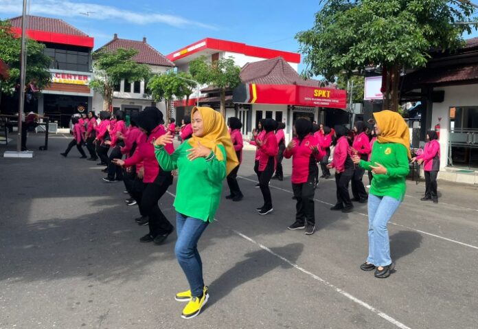 Acara berlangsung di halaman Mapolres Ponorogo dan dihadiri oleh ratusan peserta dari berbagai organisasi wanita di Kabupaten Ponorogo.