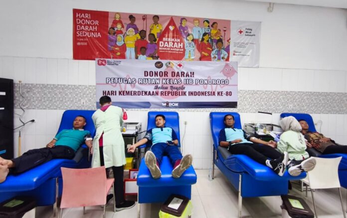 PONOROGO, TEROPONGNUSA.COM – Dalam rangka memperingati Hari Ulang Tahun ke-80 Republik Indonesia, jajaran petugas Rumah Tahanan Negara (Rutan) Kelas IIB Ponorogo menggelar kegiatan donor darah di Kantor Palang Merah Indonesia (PMI) Kabupaten Ponorogo, Sabtu (16/8/2025).