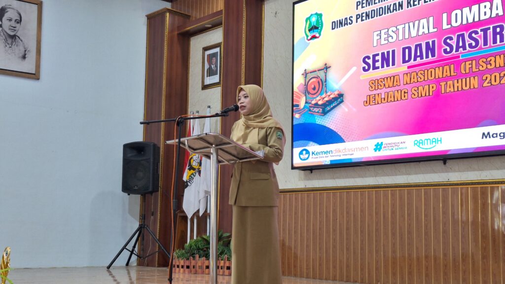 Dalam sambutannya, ia menyampaikan pesan dari Kepala Dinas Pendidikan Suhardi S.Pd. M.MPd, bahwa FLS3N bukan sekadar kompetisi, melainkan perayaan keberagaman dan kekayaan ekspresi seni anak-anak daerah.