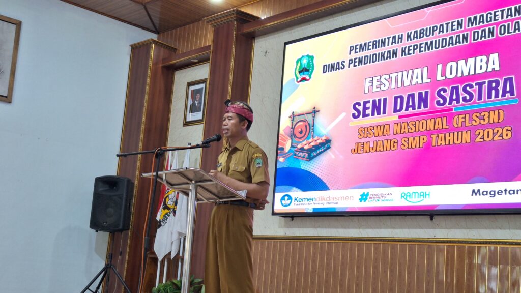 MAGETAN, TEROPONGNUSA.COM – Festival Lomba Seni dan Sastra Siswa Nasional (FLS3N) jenjang SD dan SMP tingkat Kabupaten Magetan resmi dibuka di SMPN 1 Ngariboyo, Senin (27/4/2026).